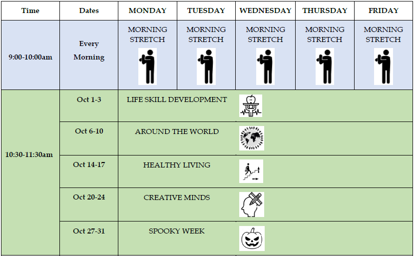 This week, we’re diving into all things spooky and scary as we celebrate Halloween! We’ll explore the history of the holiday, learn about different traditions, and enjoy Halloween-themed games, crafts, and dances.