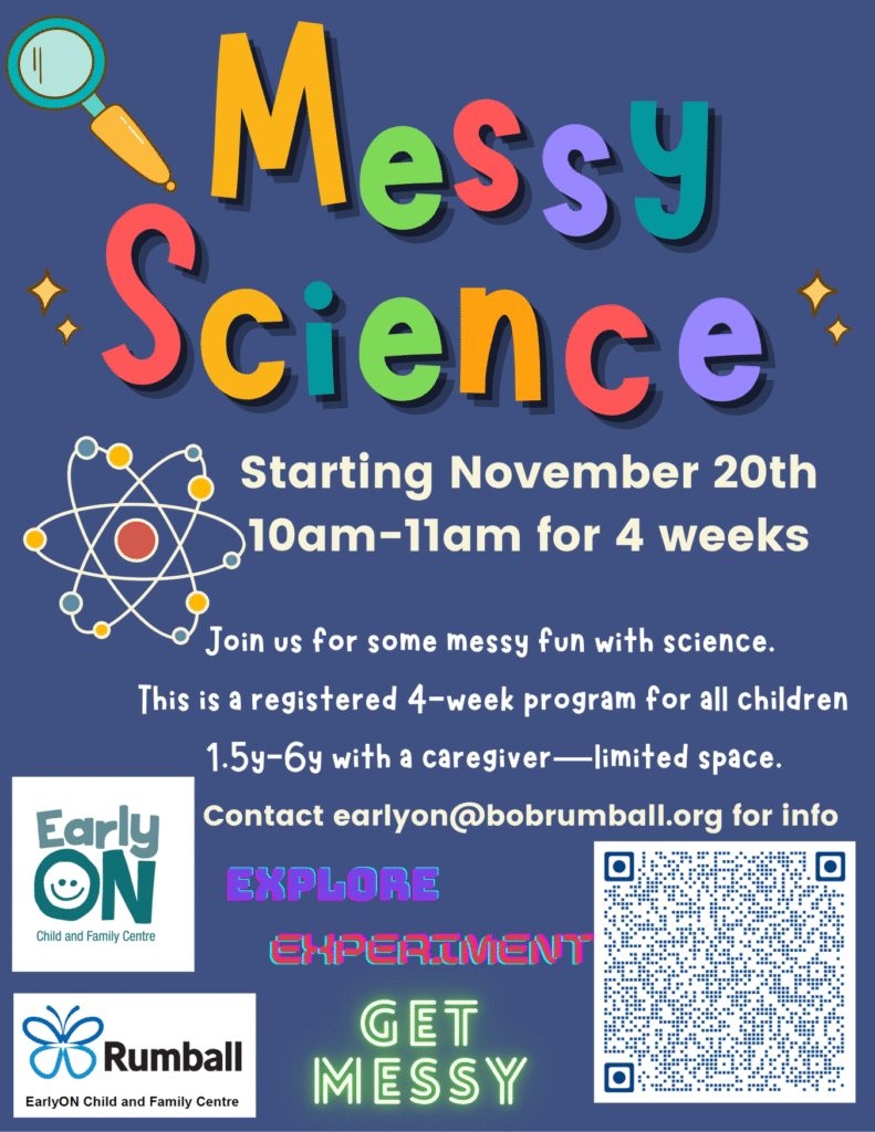 Join us for some messy fun with science. This is a registered 4-week program for all children 1.5 year to 1.6 year with a caregiver – limited space.