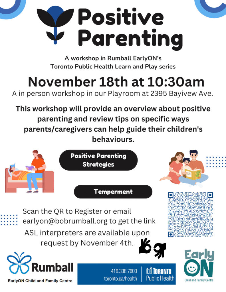 A in person workshop in our Playroom at 2395 Bayview Ave.