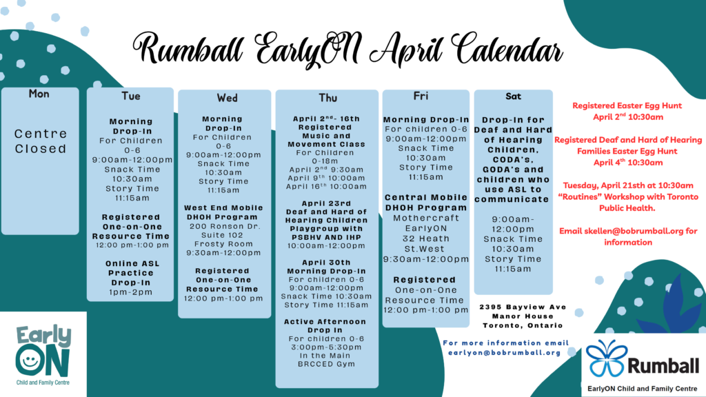 Tuesday, April 21st at 10:30am “Routines” Workshop with Toronto Public Health.